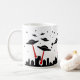 Denna mugg presenterar en upprepad design av UFOs, med röda laser som invaderar en stad. Bakgrundsfärgen kan skräddarsy, om önskad.