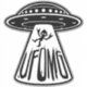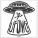 Vektorillustration av en UFO-tecknad som bortför en person som tror utomjordingar sten med UFOMG-text. Märkre: UFO, OMG, oidentifierad, flygning, objekt, åh, gud, rymd, rymdskepp, utomjording, martian, tecknad, djävulen, horn, bortförande, fjärde, slag, humor, såser