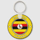Ugandas nationella flagga fyllde sig i en cirkel där land och huvudstadens namn trycktes runt.