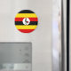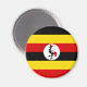 Denna utformning är utmärkande för Ugandas flagga (officiellt känd som Uganda), som är en inlandsstat land i Öster-centrala Afrikan. I den södra delen av Uganda finns en stor del av Sjö Victoria, som delas med både Kenya och Tanzania. Uganda ligger i området kring Afrikas Underbara Sjöar, och Uganda ljuger också inom Nilbäckenet. Uganda gränsar till öster av Kenya, i norr av Sydsudan, Demokratiska republiken Kongo, i södra väster av Rwanda och i söder av Tanzania. Ugandas huvudstad är Kampala, som också är landets största stad. Andra större städer och städer i Uganda är Nansana, Kira, Ssabagabo, Mbarara, Mukono, Njeru, Gulu, Lugazi, Masaka, Kasese och Hoima.