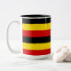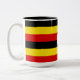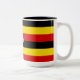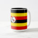 Denna utformning är utmärkande för Ugandas flagga (officiellt känd som Uganda), som är en inlandsstat land i Öster-centrala Afrikan. I den södra delen av Uganda finns en stor del av Sjö Victoria, som delas med både Kenya och Tanzania. Uganda ligger i området kring Afrikas Underbara Sjöar, och Uganda ljuger också inom Nilbäckenet. Uganda gränsar till öster av Kenya, i norr av Sydsudan, Demokratiska republiken Kongo, i södra väster av Rwanda och i söder av Tanzania. Ugandas huvudstad är Kampala, som också är landets största stad. Andra större städer och städer i Uganda är Nansana, Kira, Ssabagabo, Mbarara, Mukono, Njeru, Gulu, Lugazi, Masaka, Kasese och Hoima.