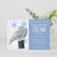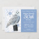 Snövit uggla på en post med vackra blå snöflingor. Anpassa med information om din födelsedagsflicka och din party-information.