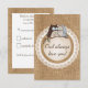 Toppen, god perfekt för avslappnad och utomhusrustiskt bröllop. Svarskortet har en struktur-bakgrund som ser ljus ut i två lägen med vit snöre-glatt trim. I mitten finns en beige cirkel med två söta uggla sitta på gren ovanför cirkeln. Den ena uggla är brun med ljusblå trim och den andra är ljusblå med beige trim. Inuti beige-cirkeln finns text i mörk brunt skript som säger Uggla Alltid Kärlek Du kan ändra texten om du vill. Svarskortets omvända sida har samma struktur-bakgrund med överlappande utseende och ett vitt rektangulärt område med anpassade och kryssrutor. Lägg till din egen text och ditt osa-datum för att anpassa dessa adunderbara svarskort till ditt eget bröllop. Matchning av Uggla Alltid Kärlek Du Avslappnad även inbjudningar, porto och adressetiketter för bröllop tillgängliga.