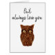 Uggla alltid kärlek du romantiskt, rustiskt trä hälsningskort