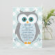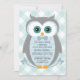 Uggla barnduschinbjudan till skogskorgsblått grått inbjudningar