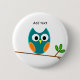 Uggla: Blå och Guld Uggla-mallknapp. VIRGINIA5050 - kreativ och ovanliga gåvor till tillfällen. INTERNATIONELL GIFTS på zazzle.com/InternationalGifts, Florida Gift Store på zazzle.com/FloridaGiftStore*, PENSION GIFT STORE på zazzle.com/RetirementGiftStore, I KÄRLEK GIFT STORE på zazzle.com/ILoveGiftStore och BIRTHDAY GIFT STORE på zazzle.com/BirthdayGiftStore
