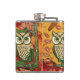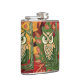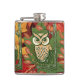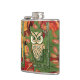 Teckning i ett uggla på gren under hösten och med bakgrund i färg under hösten.