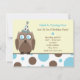 Uggla Födelsedagsfest Inbjudan Blue & Brown Polka
