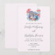 Bröllopsinbjudan med en bild av ett par uggla i kärlek sitta tillsammans på träd gren. Omgiven av blommigtar för söt, grönt och rosa.
