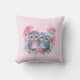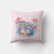 En kudde med en bild av ett par uggla i kärlek sitta tillsammans på träd gren. Omgiven av blommigtar för söt, grönt och rosa.