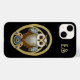 Detta vackra motiv från uggla har skapats i en stiliserad Art Deco-era-utsikt med information om guld-tråd, gem och bead-effekt i rik. Du kan lägga till din egen initialer (2 eller 3 som du vill) eller bara ett enda brev-monogram. Fågeln sitter på en svart bakgrund som gör att dess ornerade metalliska utseende är tydlig.