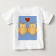 Utformning av två uggla som står tillsammans med ett rött kärlek-hjärta mellan dem på himlar blå bakgrund. Utformningen av en tecknad som är snabb och snabb och inspirerad av kärlek och vänskap.