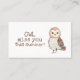 Ett personligt telefonkort för barn! Det här söta uggla-telefonkortet har plats för all din kontaktinformation så att dina barn kan behålla kontakt med sina vänner under sommaruppehållet eller med nya vänner de träffar! Perfekt också för barn att växla och umgås mellan fotbollssäsongerna! Det här affärskortet är bara för föräldrar och barn och innehåller en bra bild av ladan uggla med texten "uggla saknar dig i sommar" på framsidan och gott om utrymme för din e-post, mobila nummer, adress eller annan information som du vill inkludera på baksidan!