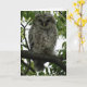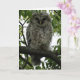 Fotografi av ett Barred uggla, med ett sentimentalt ordspråk för detta kort.