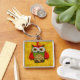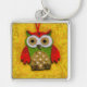 Uggla målning fyrkantig silverfärgad nyckelring