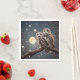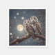 Par av uggla härjade på träd gren med fullt och stjärnor i mörk blått himlar.