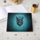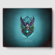 Uggla med magiskt inslag. Utformningen har ett imponerande, stiliserat uggla med vingar uppslaget, designat i en pulserande färg palett av lila, blått och vitt. Uggla har en stor närvaro, medan dess piercing gult ögon tittar direkt på tittaren och skapar en känsla av intensitet och mysterium. Intrikera, rotera mönster uppåt runt uggla, påminner om magiska symboler, ge hela bilden som en mystisk aura.