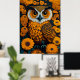 Uggla med stort ögon framför blommor. Design finns på andra produkter.