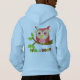 En nätt uggla av ljus korall med rosa- och vitpolka dots och en blåttblomma sitter på en trädgren, och mång--färger text läser "mig förmiddagen en dyft!", på dyftugglaT-tröja hänger lös kudder bodysuits, muggar, kort, klistermärkear, klistermärkear, keychains, journaler, och andra uggladräkt- och gåvaobjekt.