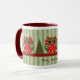 Tittar du för en söt julklapp? Kanske är det här mugg du vill köpa. Grönt och rött uggla dekoreras i stil under jul och separeras från varandra med lite geometriskt julgranar. Mugg har en strimlad bakgrund. Texten "God jul" är ett mallobjekt och kan enkelt ändras till vilken annan text som helst. Det är möjligt att ändra storleka och/eller färg i typsnitt. Du kan till och med välja en annan teckensnittstyp.