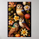 Poster utskrifter av uggla och blommor i ett modernt Haeckel-stil. Botanisk digital konst skapat med AI-genererande software.