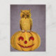 Vintage illustration i orangen av sitta i uggla ovanpå jack o lantern