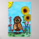 Den här söta lilla ugglan vilar sig i en trädgård med solrosor. Denna affisch är en fin present till ett barnrum eller en babysnurra.