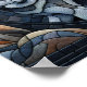 Fin skildring av en mosaikkollage med en varg och uggla framför måne.