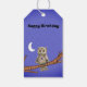 Dessa märkre är mistlig lila med ett brunt uggla med guld ögon sitta på en gren i träd, som bär ett lila kristallhalsband med ett vitt halvfärdigt måne. Anpassa texten längst fram och tillbaka med mallarna.
