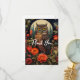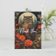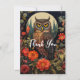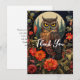 Tack för kortet med en coola som tittar uggla med en piercing. En fullt i ryggen med en trädgård med röda blommor.