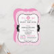 Det är en flicka! Cute, elegant rosa och svart uggla-temat babydusch inbjudan på ljuspastel rosa mönster med vintagens formella utseende. Underbar för uggla, nöjesbabyduschar för trädjur. Forminbjudan för Retroparenteser.