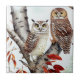 Uggla sitta i Träd i hösten i en vit fågelfader Kakelplatta