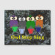 Dags för en Uggla Step-Sjunga! En bakgrund med vinter-gröna träd gör en festlig helgdag. Fyra söta ugglor har en lanter i klassen färger av Bryn Mawr college-traditioner - rött, grönt, ljusblått och mörk blått. Ljusen levereras till varje första år i student vid Lantern Night-ceremonin. Därefter bär alla Bryn Mawr studenter och aluminium med stolthet sina lanternor för att lägga sjungor på traditionsnätterna och på Bryn Mawr-reunions. Roligt magnetkort att skicka och med Mawrter-vänner.