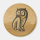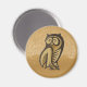 Uggla ikon på beige grunge-bakgrunden. Symbol för visdom och välstånd.