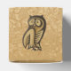Uggla ikon på beige grunge-bakgrunden. Symbol för visdom och välstånd.