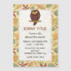 Tecknad illustration av uggla sitta på träd gren under beige, sömlös bakgrund med löv.