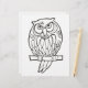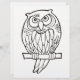 Sidan Färga bok. Uggla tecknad sitta på gren tittar framför allt.