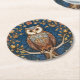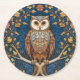 Uggla vid gren blå höstbakgrund art nouveau underlägg papper rund