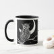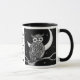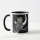 En gullig overklig tittar ugglateckning imprinteds på muggen tillsammans med ett citationstecken om att vara nattugglan för a sent -?