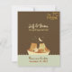En charmig illustration av en sjungande uggla & en katt som spelar gitarr på en liten segelbåt under månsken himlen pryder denna sagolika bröllopsinbjudan.