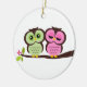 Förtjusande koppla ihop av ugglor perched på en gren.