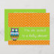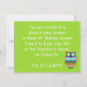 en överraskad uggla på ett limegrönt band med orange och vit prickig bakgrund kommer att ge en glad stämning till de du bjuder in. skapat delvis med resurser från Atenais.