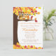 Titta vem som får Tvillingar! Fira tvillingarnas ankomst med denna baby shower-inbjudan. Den har en färgrik bakgrund med ett träd som har ljusa höstblad i rött, gult och orange. Det finns en familj ugglor: Pappa, Mamma och 2 bebisar som sitter på en gren i trädet. De har höstfärgade randiga halsdukar runt halsen. Anpassa genom att lägga till din festinformation i mitten. Ta en titt på de många andra produkterna och designen i denna kollektion.