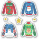 Fyra färgstarka fula svettare och guld glitter-stjärnor (inte äkta glitter).