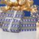 Den här julklappen har en traditionell färg: blått, rött och grönt. Mönster i Norden sticka erbjuder vit träd och snöflingor. Det här är perfekt att paras med en ful jultröja.