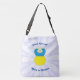 Den ukrainska Flagga är blå ovanpå och gult på grund. Här har vi en ängel klädd i Ukrainas blå och gult flagga. Bakgrunden är vita solstrålar. Över, i blå brev står SLAVA UKRAINI. Under samma färg finns ord GLORY TO UKRAINE. Här på en kor-väska. Om du vill kan du välja en skuldra.