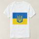 Ukraina jackar om arm och Ukrainas flagga. Denna utformning visar färg i Ukrainas flagga, blått och guld, på Ukrainas jacka av arm och flagga. Visa ert pride i Ukrainas suveräna land. Oavsett om ni är av ukrainskt arv eller bara beundrar folkets anda kan ni visa ert stöd för Ukraina.