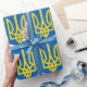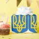 Patriotisk ukrainsk jacka av arm. Jacka av Arm från Ukraina. Mindre Jacka av Arm från Ukraina, det så kallade Tryzub. En stiliserad tridentsymbol i guld på en blå bakgrundssköld.