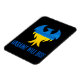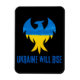 En inspirerande magnetdesign som påminner om det ukrainska folkets återhämtningsförmåga har en foenix fågellyuett i färgen blått och gult i Ukrainas flagga med "Ukraina kommer att stiga upp" text i ett bedrövligt typsnitt.
