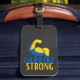 Utformningen av bagagetaggen i mörk har gjort att muskelgrafiken böjts och Ukraina har en stark text i blå och gult färg i det ukrainska flagga. Slava Ukrainini!